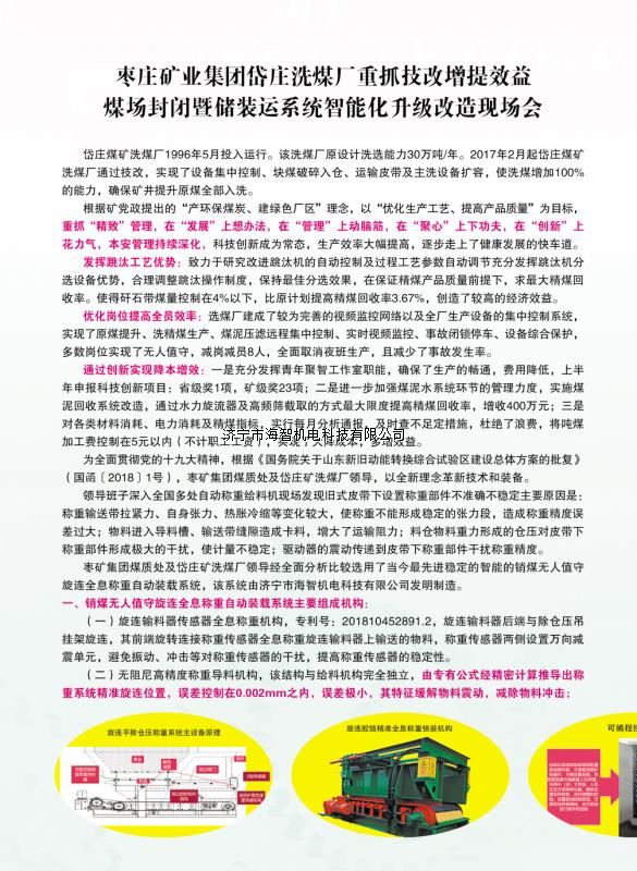本產(chǎn)品一經(jīng)推出即獲得各大設(shè)計院及用戶的一致好評,率先在棗礦集團岱莊煤礦取得成功應(yīng)用,2018年9月受邀參加了《棗礦集團煤場封閉暨儲裝運系統(tǒng)智能化升級改造現(xiàn)場會》,智能裝車系統(tǒng)得到了充分肯定!我司憑借雄厚的加工制造實力及過硬的創(chuàng)新技術(shù)能力,勢必為運輸稱重系統(tǒng)、快速計量裝車系統(tǒng)帶來又一次的技術(shù)創(chuàng)新變革。