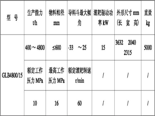 GLB4800-15型耙式(變傾角)給料機(jī)性能參數(shù):