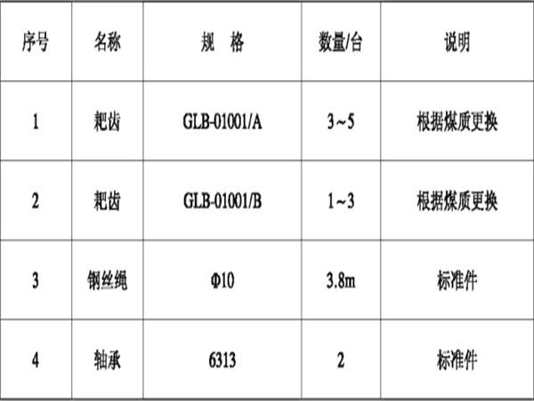 GLB4800-15型耙式(變傾角)給料機(jī)易損件明細(xì)表: