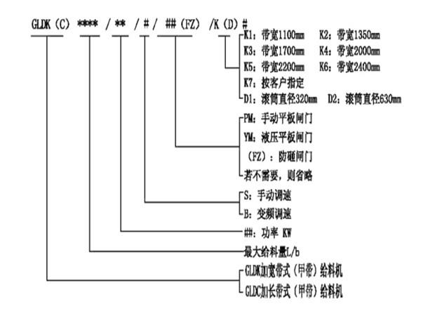 加寬加長帶式(甲帶)給料機型號說明: